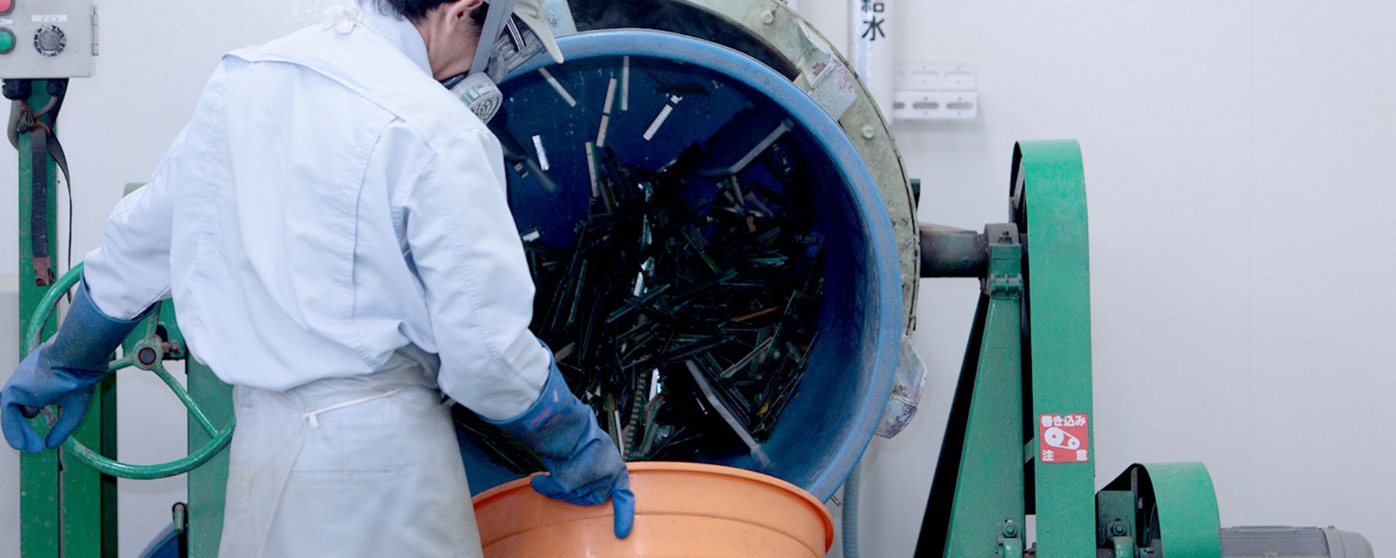 貴金属事業では、それらスクラップを集荷し、処理方法の最適化と独自の溶媒抽出法を用いて有価金属のみを効率的に回収。スクラップを再生することで、環境負荷の低減にも貢献しています。機密性の高い管理で情報セキュリティを保持した独自の工程は、お客さまから高い評価と信頼を得ています。